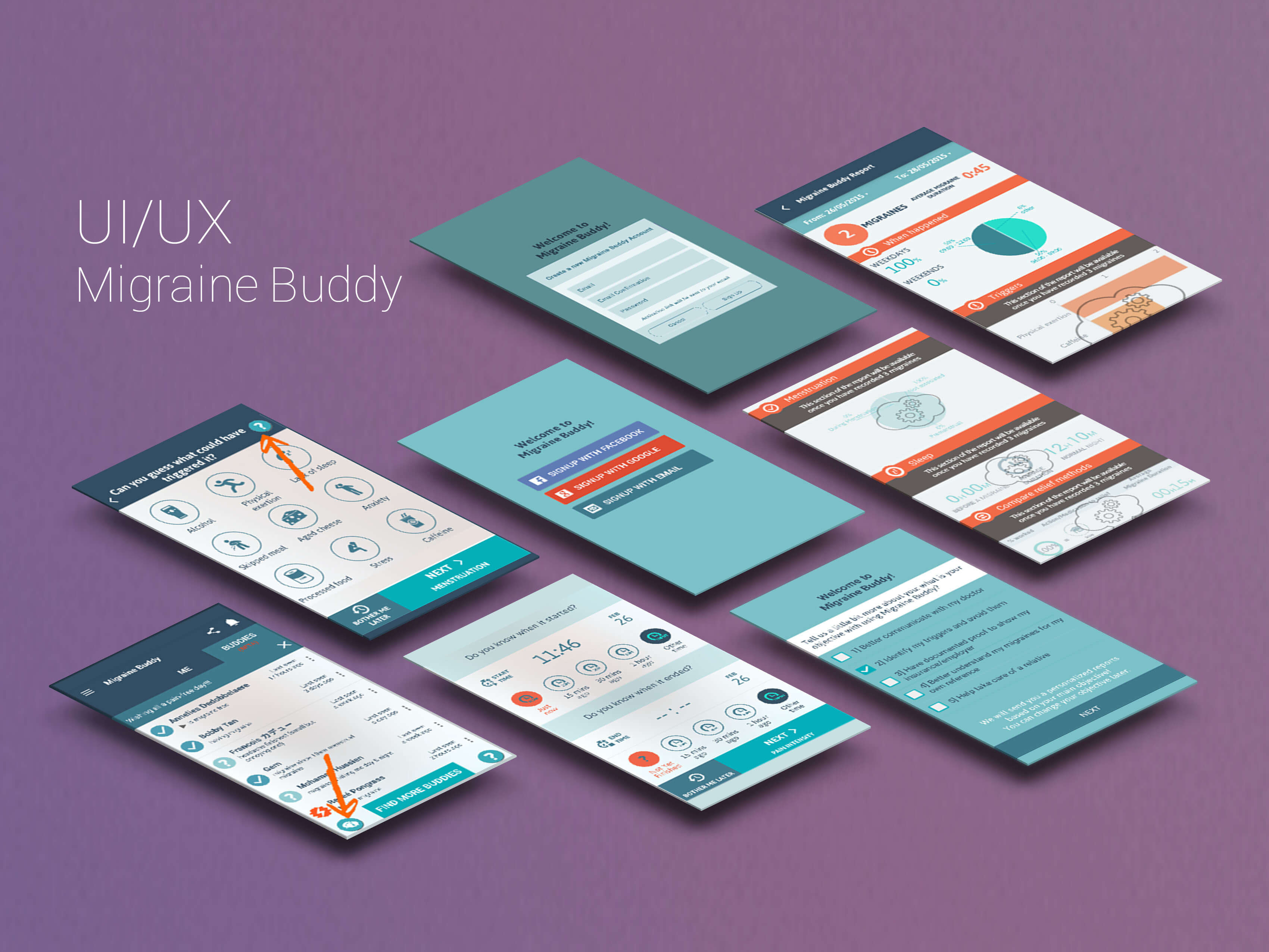 A migraine headache diary that helps users record and identify triggers of migraines, symptoms, medication and other lifestyle factors.